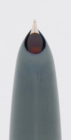 Condition Excellent condition with no cracks, chips, dents, or dings. The barrel has light scratching with more moderate scratching near the end. The area of the section hood near the nib has some long thin scratch lines. The cap has moderate scratching, but is still nice and shiny. There are two small shallow dents near the top of the cap, about 90 degrees to the right of the clip. The clip and cap jewel look great. The imprints are clear.