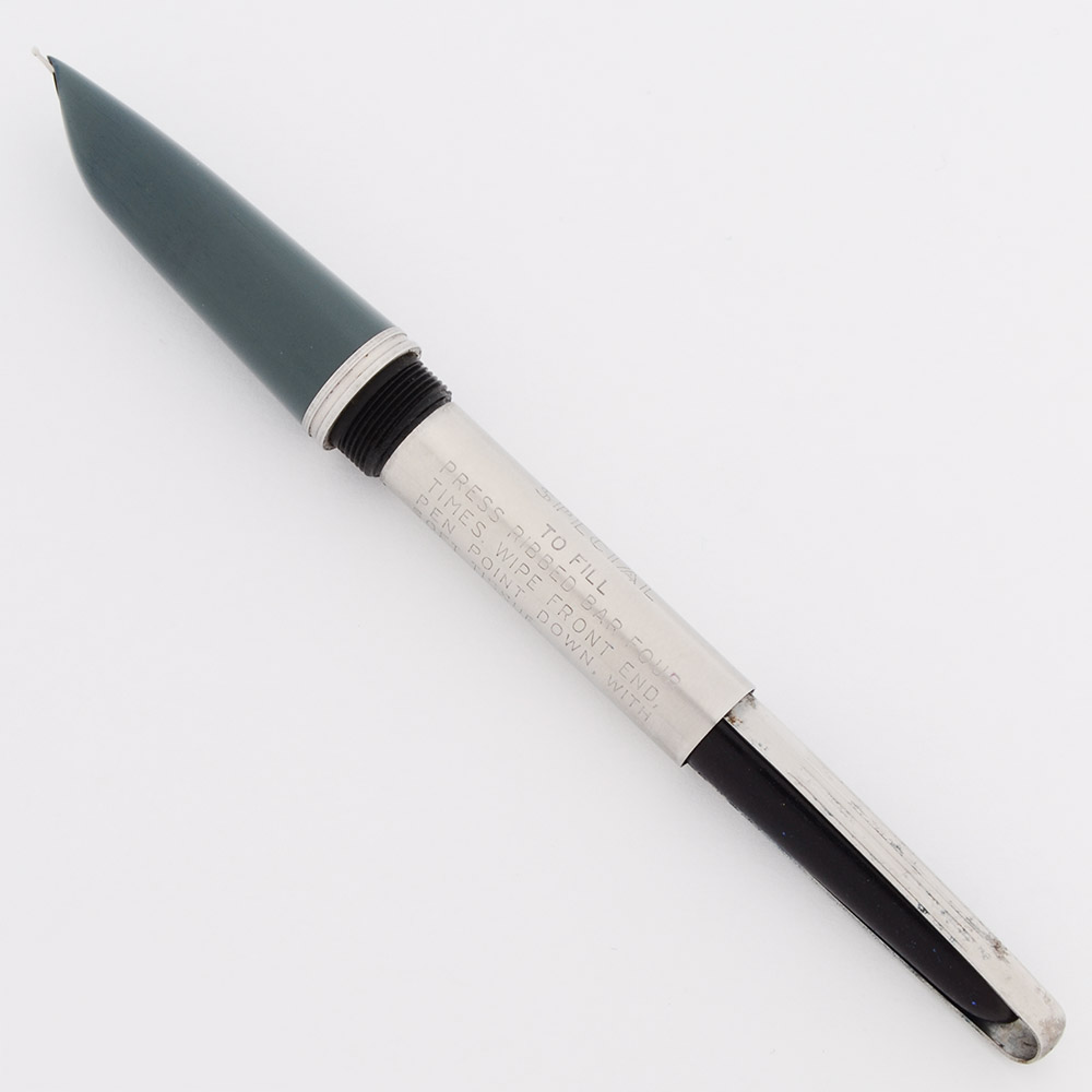 Color The color is navy grey. This is the aerometric gray color for the Parker 51's. It's a blue-green gray. Shiny stainless steel cap with an arrow clip, chrome plated trim, and black cap jewel, all of which are common on Specials.