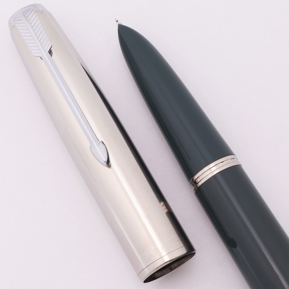 Color The color is Navy gray. This is the aerometric gray color for the Parker 51's. Smooth and shiny stainless steel cap with an arrow clip, chrome plated trim, and black cap jewel as is common on Specials.