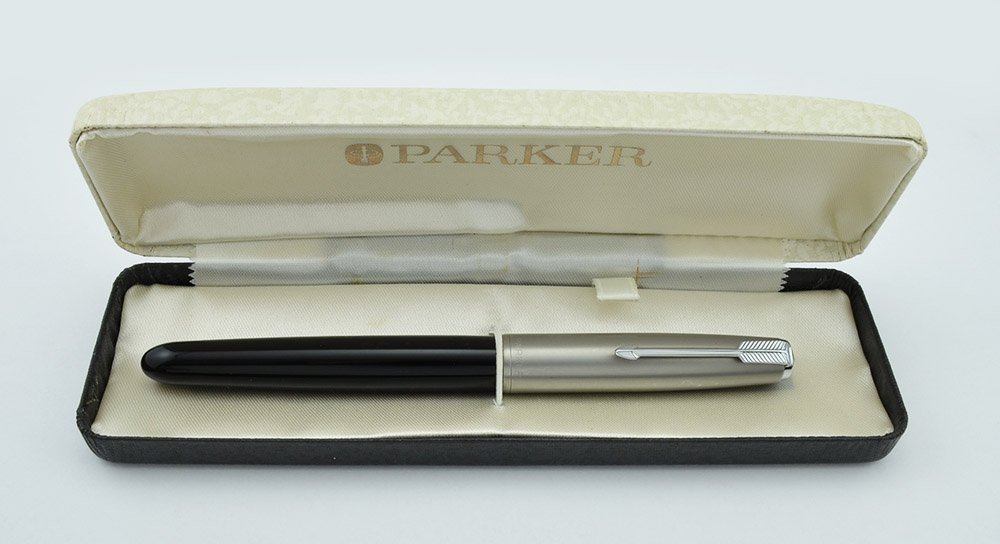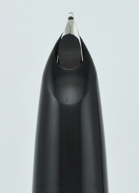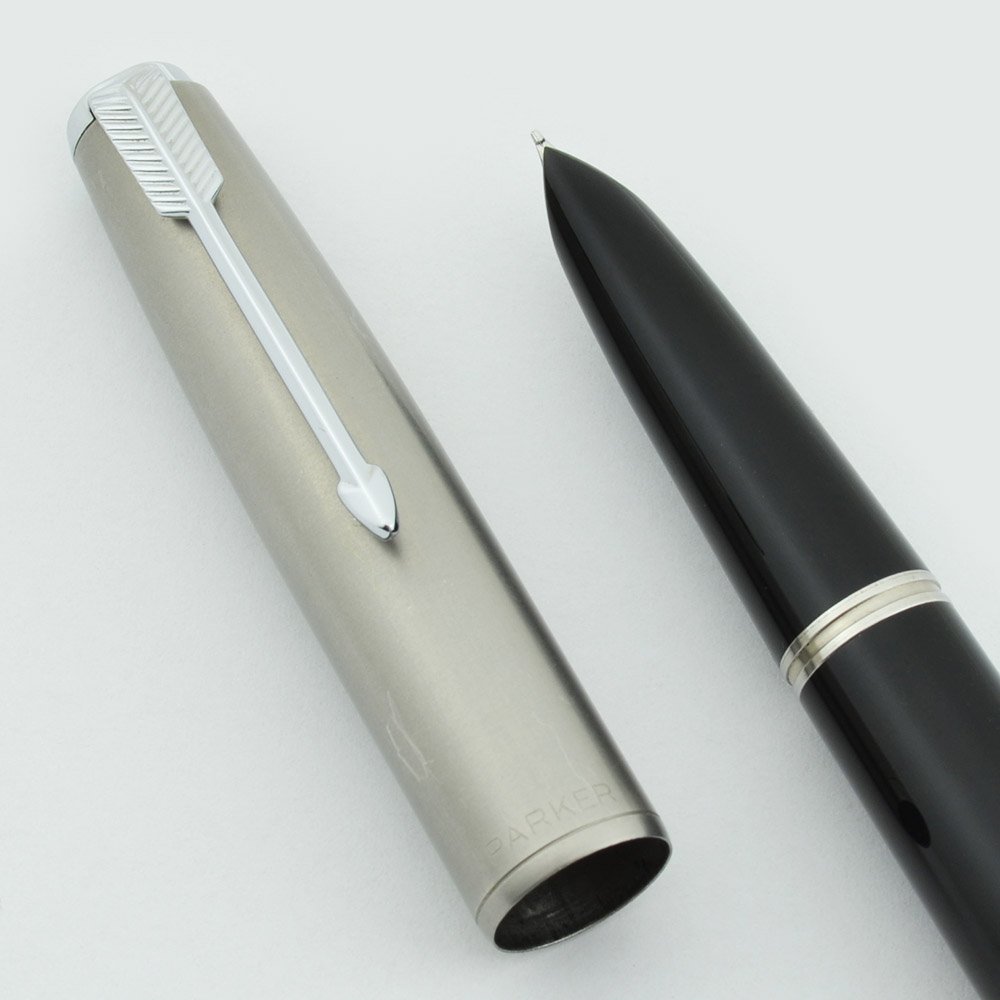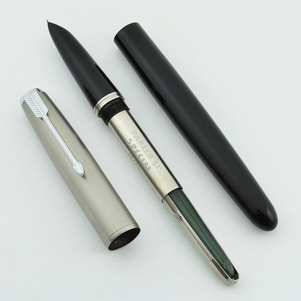 Color Black body with a Lustraloy stainless steel cap with an arrow clip, chrome plated trim, and pearlescent cap jewel. )You don't normally see this type of cap with a "Special" as it is the cap you'll see on Parker 51 standard pens.)
