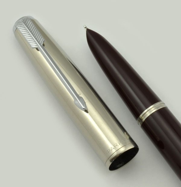 Color The color is called burgundy, and it is very dark brownish-burgundy colored. Stainless steel cap. Black cap jewel.