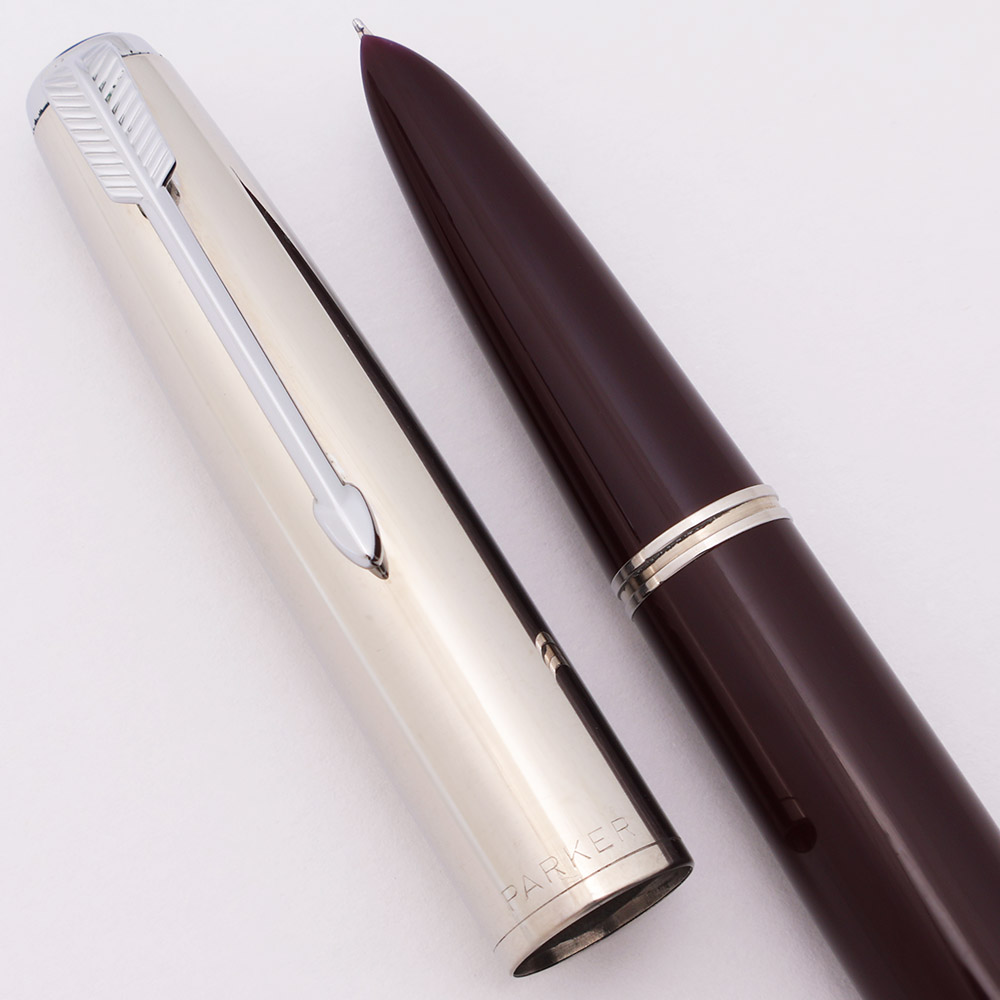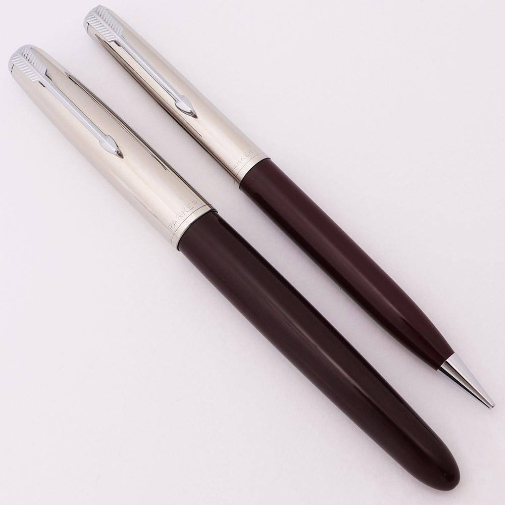 Color Burgundy bodies with shiny steel caps. They have the Parker 51 Special black cap jewels.