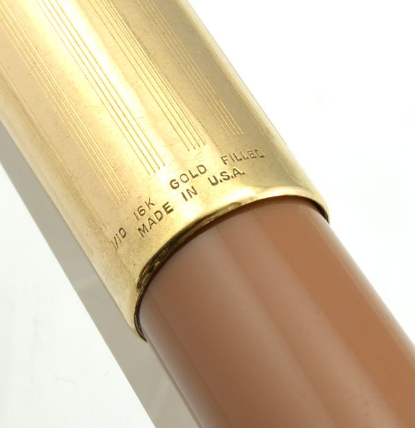 | Color | Light brown (Buckskin Beige) body, 1/10 16k gold filled cap in a pattern of four parallel lines. The end jewels are pearlescent. |