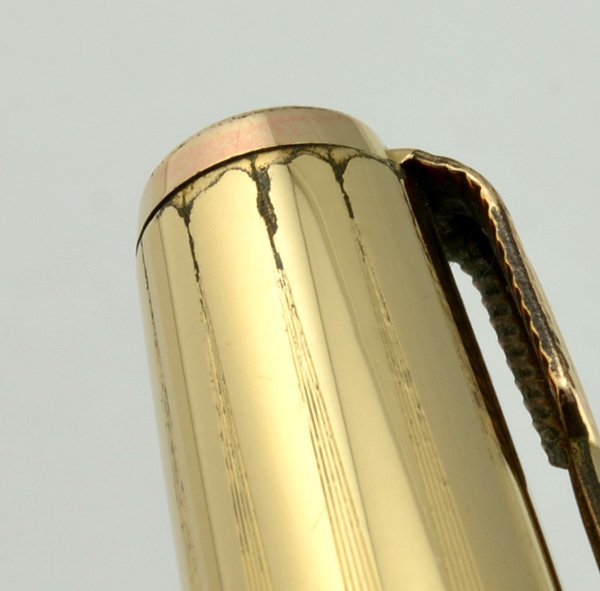 | Color | Black body with a 1/10 12k gold filled cap with the pattern of converging lines, arrow clip. Pearlescent cap jewel. |