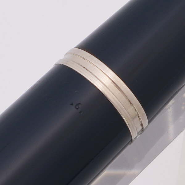 Condition Gorgeous! Excellent + condition with no cracks, chips, dents, or dings. This is a darkly colored, shiny pen, with an elegant gold filled cap. The section and barrel have only light wear. The cap has microscratching and some wear along the cap lip and along the lines of the cap, but no brassing. The clip has plating wear along the sides. The blue diamond has nearly all of its paint, with just a little dot missing in the center. The clip ring looks good, but there is some brassing on the inner rings closest to the jewel. The pearlized jewel looks lovely. The imprints are clear.
