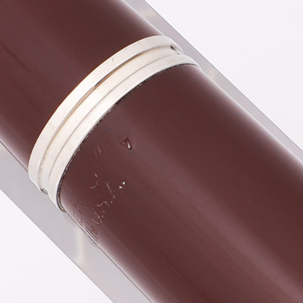 Condition Excellent condition. The barrel and section hood show light wear and microscratching, but no deep scratches, cracks or bite marks. The blind cap has some more moderate microscratching. The cap looks really great, with no dents or dings. The clip has plating wear along the sides and on the ridge. The imprints are very clear and sharp.