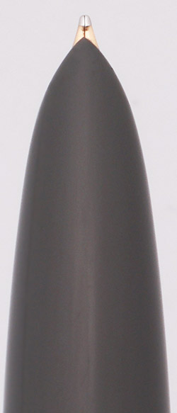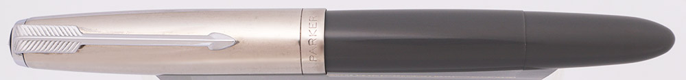 Color Dove Grey body, with a shiny steel cap and "long" arrow clip found on the late Vacumatic filling Parker 51s. Grey pearlescent cap jewel.