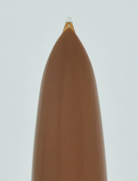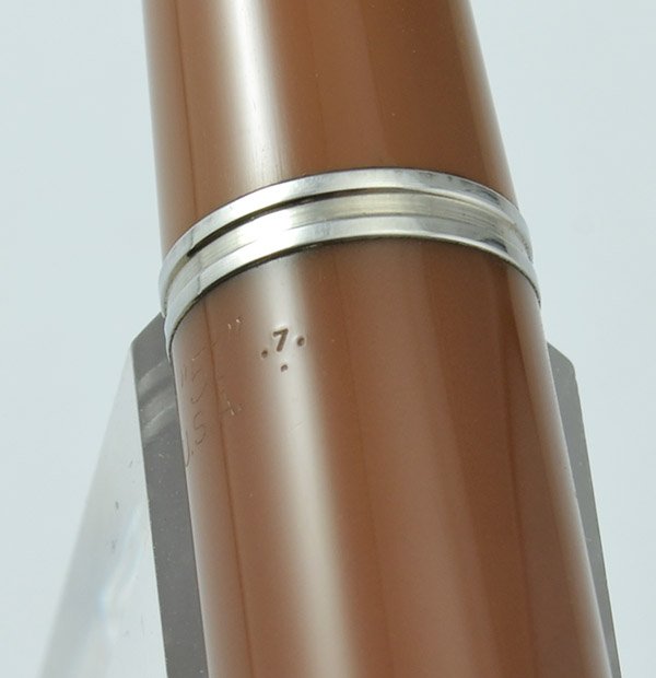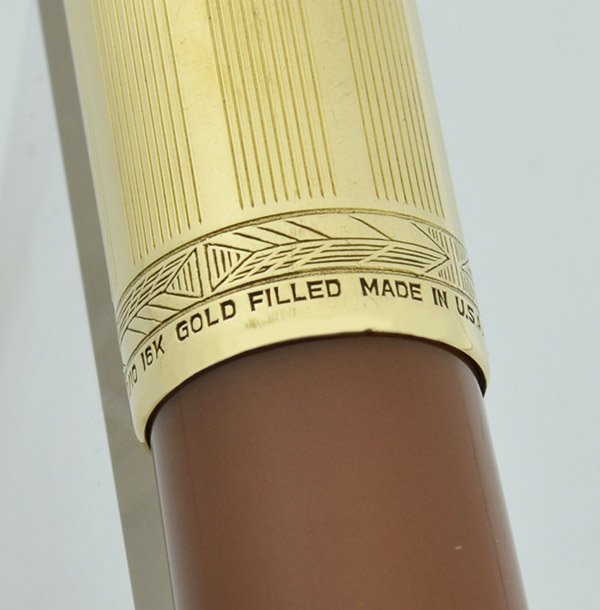 Color Light brown (Buckskin Beige) body, 1/10 16k gold filled cap in a pattern of four parallel lines. The end jewels are pearlescent.