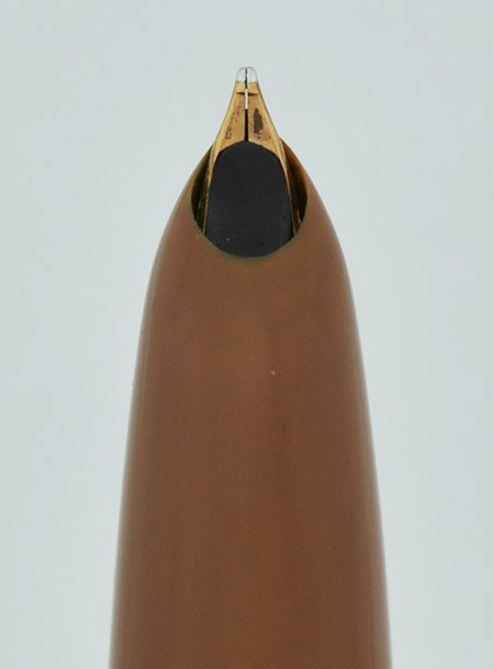 Condition Excellent! The body is very good looking, and it has been nicely polished. It's very hard to find this color P51 without some discoloration, but this pen looks very uniform in terms of color. The imprint is readable and quite clear. The tassies are very good with no brassing, and the jewels are excellent.