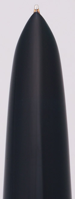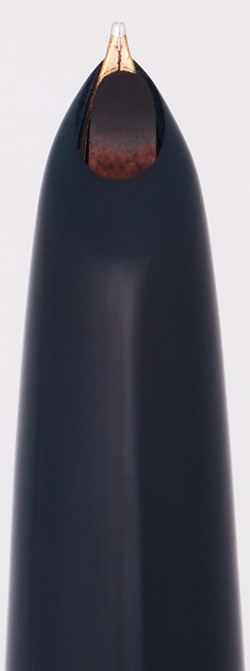 Condition Excellent + condition. This is a shiny, handsome pen, in a deep color and with a classic design. There is some very light scratching near the end of the barrel from posting. The section has a few of the typical capping marks. Clutch ring has some plating wear. The cap looks fantastic with no dents or dings. No plating wear around the top edge where the tassie attaches. The clip does have a bit of plating wear along the edges. The blue diamond is fully intact. The pearlized jewel has some slight mottling, but looks quite nice. The imprints are clear.