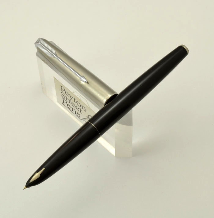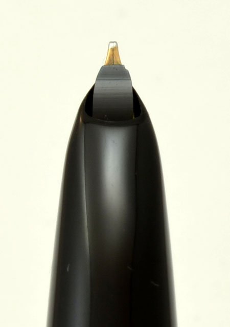 Nib | The gold nib is not marked but it looks and writes like a medium-fine. The nib is in great shape and not worn at all, lots of dipping material. We tested it and found it to be very smooth and wet. |