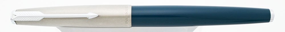 Color Lustraloy steel cap and teal barrel and section. It has pearlescent jewels at either end.