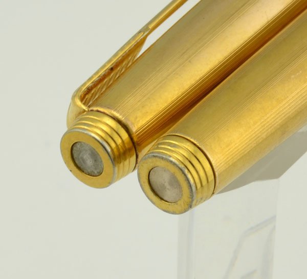 | Condition | Very nice condition, just a little better than user grade. The gold plating has fine microscratches and is thinning around the tops, ends, and cap edge, but there are no dents, dings or cracks, just signs of normal use. The section is in excellent condition, not at all worn (which can be a problemwith the P75), and the cap snaps on satisfyingly. The pen is in excellent working and writing condition. |
