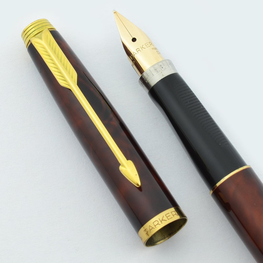 Condition Very nice condition. There are a few small flaws and scratches in the lacquer, including a small chip in the upper cap. The trim shows some small scratches and spots of wear (see photos), but no real brassing. No large dents or dings. It's working well with the squeeze converter that's installed.
