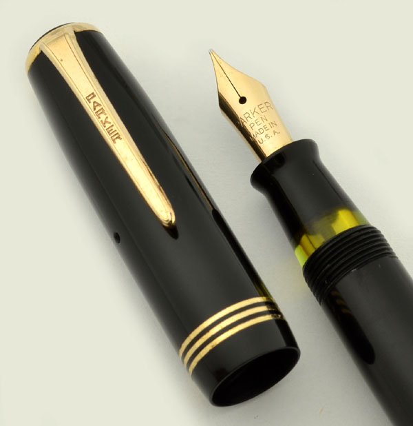 Filling System Button filler - works well with a new sac, restored here at Peyton Street Pens. It has the "Visiometer" which was Parker's name for the see-thru ink-vue section.