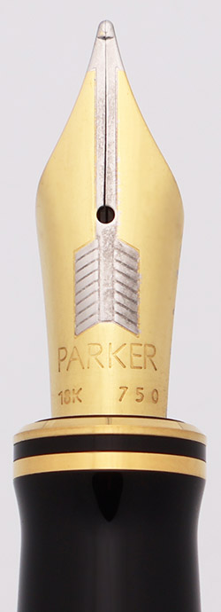 Nib MEDIUM 18k nib. It is labeled M on the feed. This is the first two-toned "Arrow" style nib.