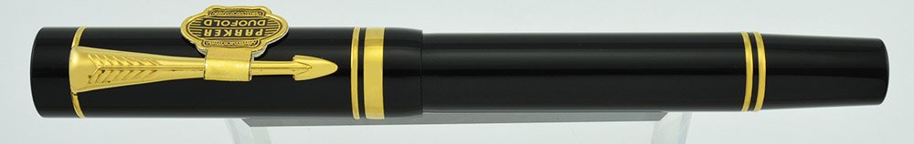 Condition Near mint condition. It has some polishing marks on the trim and consistent handwear throughout. There were a few dots of tarnish on the clip when we took the photos, but they have been removed with light polishing.The imprints are clear and there are no dents, chips, cracks, or signs of plating wear. Comes with Parker Duofold packaging and clip tag.