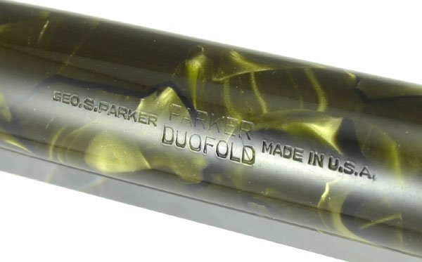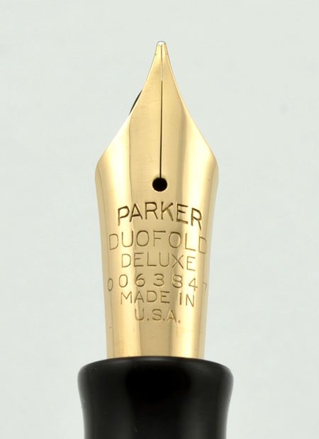 Nib | Fine "Parker Duofold Deluxe" numbered nib, no flex. Writes very smoothly and has a lot of tipping material. |