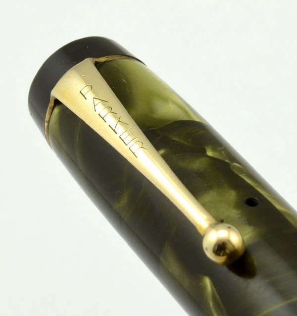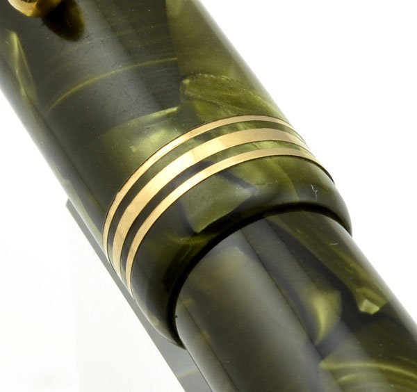 Color | Sea Green (dark green marble) body and cap with gold filled trim. |
