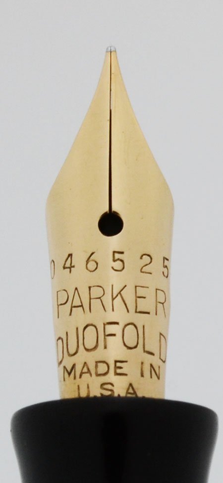 Nib FINE Parker Duofold Pen nib. It is slightly springy and writes smoothly.