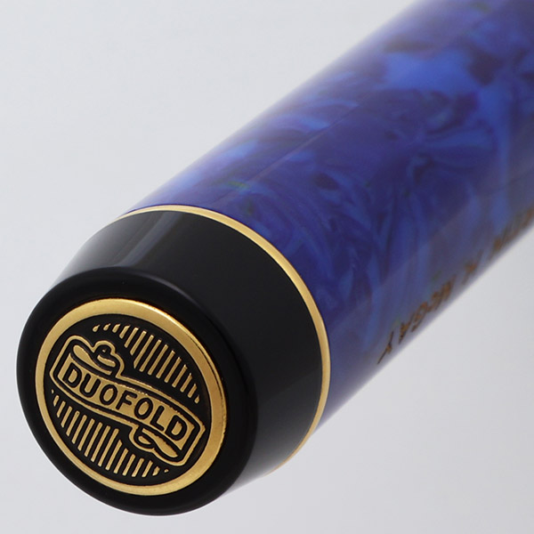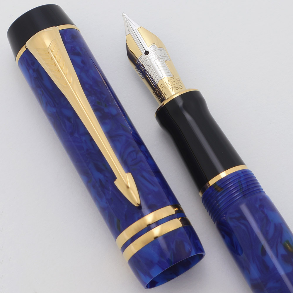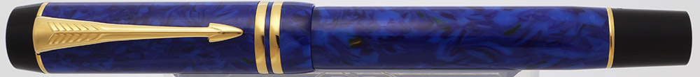 Color Bright "lapis" blue marble with gold plated trim. Black pieces at the ends of the barrel and cap, and a black section.