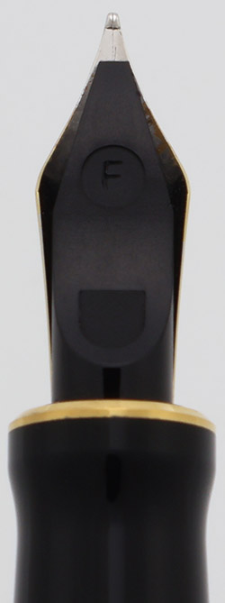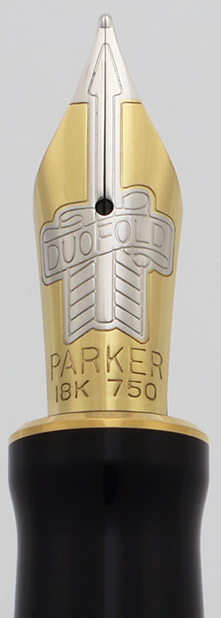 Nib FINE 18k 750 nib is marked F on the feed. This is the second "banner" style nib, correct for this year of Duofold.