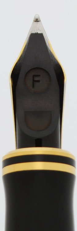 Nib FINE 18k 750 nib is marked F on the feed. This is the "arrow" style nib, correct for this year of Duofold.