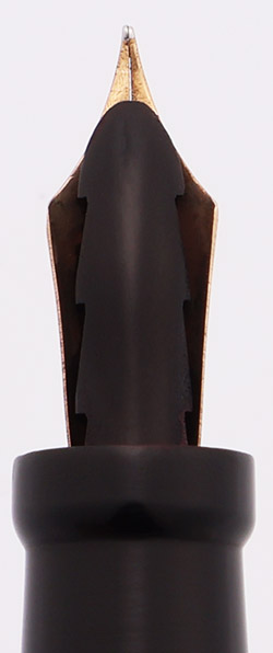 (Note: the 18 that's stamped on the nib is a bit of a puzzle. Duofolds were made in the USA from around 1921 - 1936. The company started using date codes in 1934, and the format was QY, where Q is the quarter and Y is the last digit of the year. "18" would have corresponded with the 1st quarter of 1938 under that schema, but these pens had gone out of production by then. Parker was still making Duofolds in other countries into the '40s...but the nib indicates that it was made in the US. It's possible that the nib was a replacement, or perhaps it was a code for something else, like nib size. We can't find any documentation to back up that last possibility. Perhaps it's just one of those mysteries that keep us fascinated by vintage pens!)