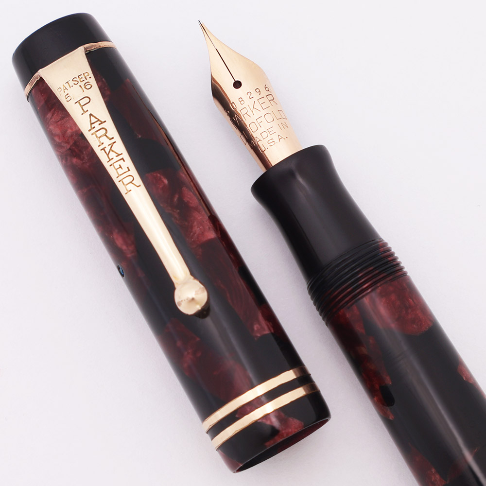 Condition Excellent condition with no cracks, chips, dents, or dings. This is a beautifully and richly colored pen with great shine and classic styling. The cap and barrel have light scratching. The barrel has light marks caused by the cap lip. The cap bands have light scratching, and there is brassing along the edges. The clip has plating wear along the sides, and some brassing on the call end. The imprints are clear.