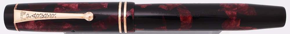 Color Burgundy and black marble body with black endpieces and two narrow cap bands. The trim is gold plated.