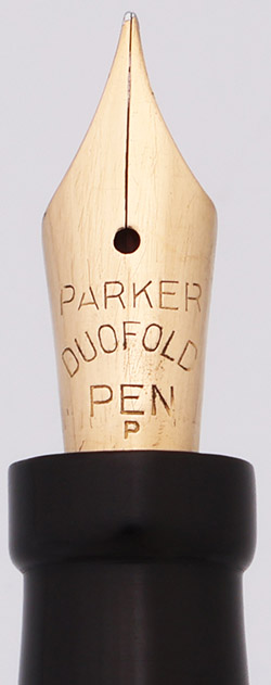 Nib Fine Parker Duofold nib. Firm and smooth.