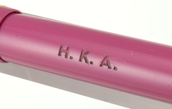 Color A bright pinkish-purple which we think must be the Magenta of the ads for the pastels. Gold trim.