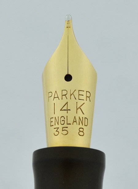 Nib Large Parker Duofold 14k nib is medium and looks very good with lots of tipping material. Marked "35 8" it is very smooth. (The #35 nib is correct for the senior model.)