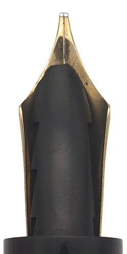Condition Excellent condition with no cracks, chips, dents, or dings. This is a velvety black, shiny pen in a classic design. The barrel has noticeable marks caused by the cap lip and moderate to heavy scratching. The cap has light wear with an occasional scratch. The raised cap band looks excellent with some light microscratches and one small dot of plating wear. The clip has plating wear on the ball end and along the top of the right side edge. It also has some longish scratches and microscratching. The clip ring has plating wear and heavy microscratching. The imprints are clear.