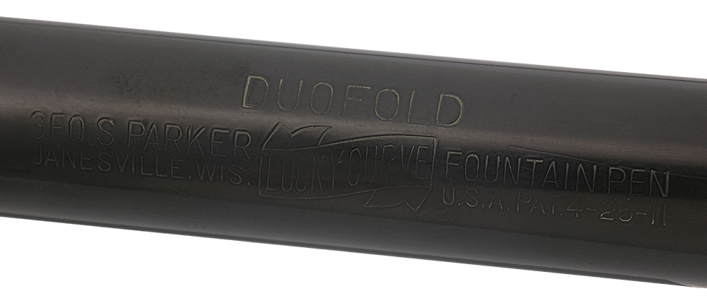 Product Name Duofold Senior - The imprint on the body says "Geo. S. Parker Duofold Fountain Pen Lucky Curve Janesville, WIS USA Pat 4-25-11"