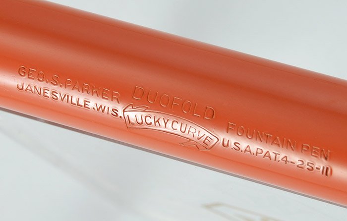 Product Name Duofold Senior - The imprint on the body says "Geo. S. Parker Duofold Fountain Pen Lucky Curve Janesville, WIS USA Pat 4-25-11"