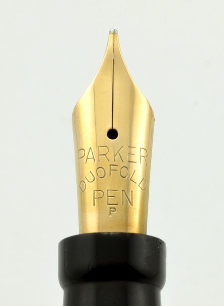 | Nib | Medium nib is marked "Parker Duofold Pen P". Very smooth with good ink flow. The nib is in great condition and really huge. |