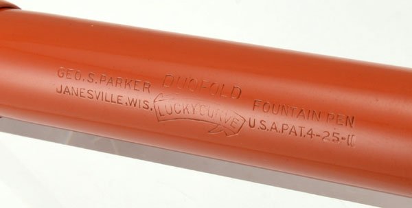 | Color | Red permanite (orange) with black ends, and gold plated trim. |