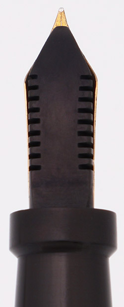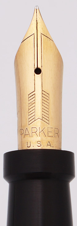 Nib Fine Gold Parker Vacumatic nib (large). These were frequently used by Parker to replace the original Duofold nibs. There's a small dent on the side of the nib, but it doesn't affect ink flow or writing experience.