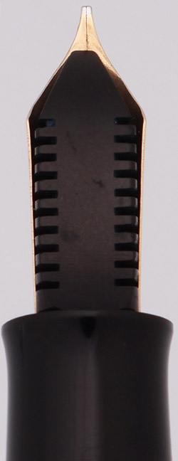Nib FINE Parker Vacumatic nib. (We've heard that the Parker service department commonly replaced the original Duofold nibs with Vacumatic nibs.)
