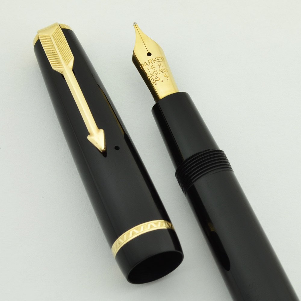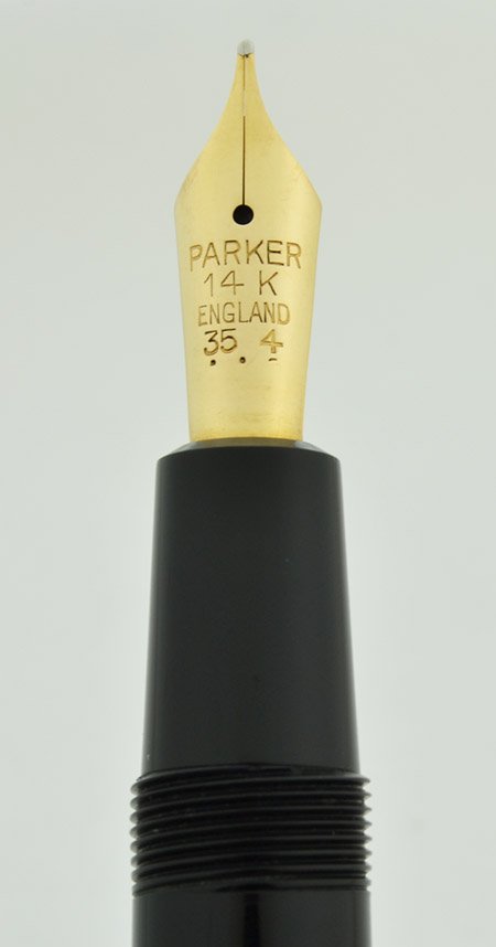 Nib MEDIUM 14k nib is marked 35. The 35 indicates that it's a nib that goes on a Duofold Senior. It's fairly firm and smooth with great tipping material.