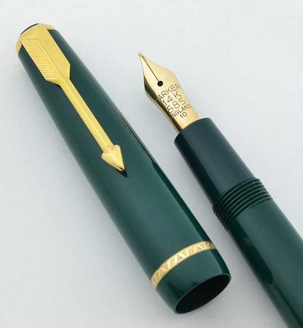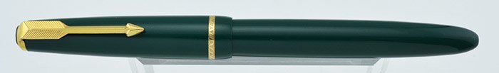 Product Name Duofold ... we think this is the Senior, as it is as long as a Maxima (5-3/8") but it has a thinner cap band and is slightly less fat. The imprint just says "Parker Duofold", whereas the Maxima pens usually say that on the imprint.