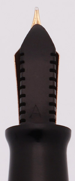 Nib Fine firm gold Parker Pen nib. It's marked with an A for "accountant", to make sure those numbers are clearly posted in the journals.