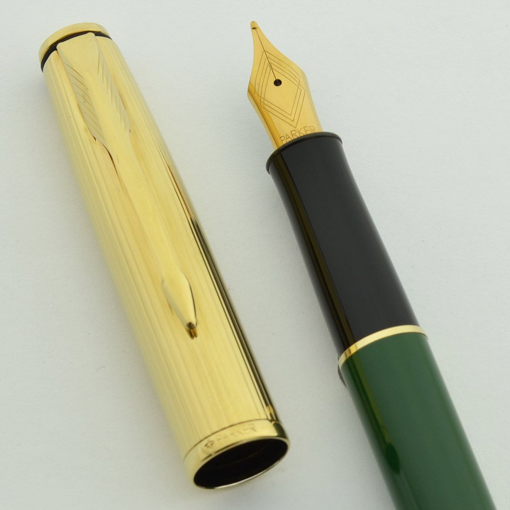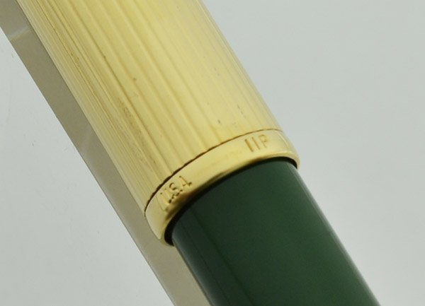 Color Green lacquer body and gold plated cap and trim. The cap is called "Dimonite G" and is 14k plated.