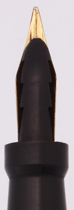 Nib Fine flexible Lucky Curve nib, with line variation from extra fine to broad. Very soft feeling, the tines spread widely with little pressure. Please see writing sample.