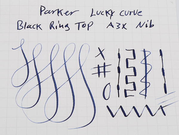 Nib Nicely Flexible Parker Lucky Curve A3X nib. Good tipping material. Line variation from fine to medium. Please see the writing sample below.