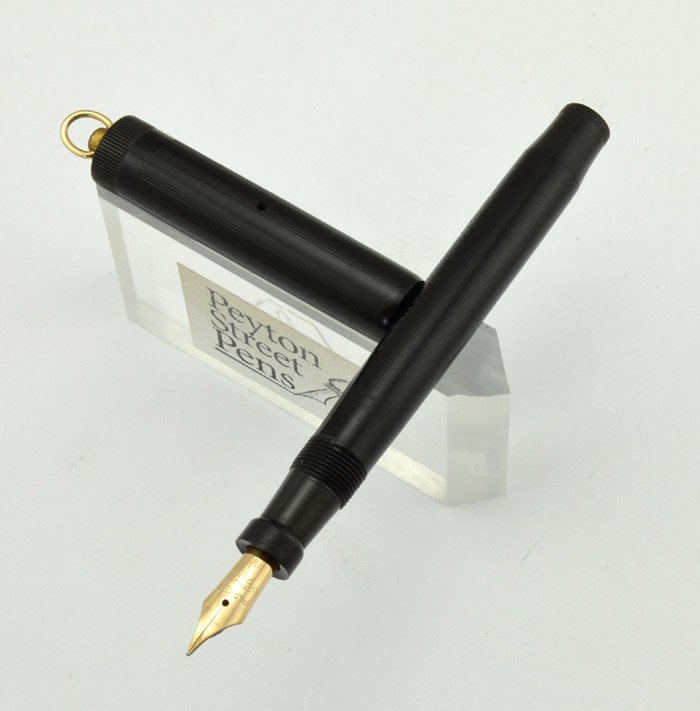 | Color | Black body with gold filled ring trim. Hard rubber black top and button, but we're not sure if the pen itself is hard rubber or permanite. |