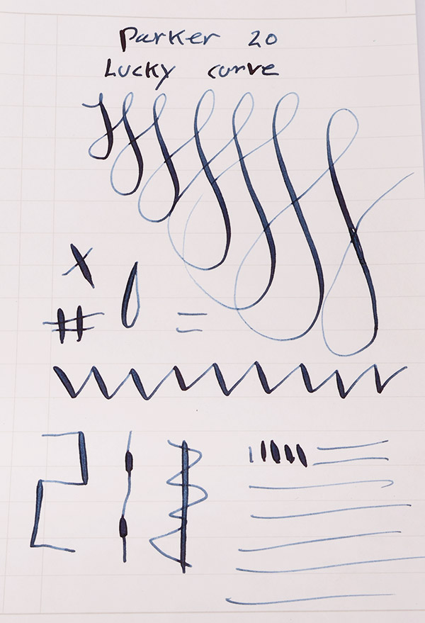 Nib FINE FLEXIBLE Parker Lucky Curve #2 nib. The tines flex with a small amount of pressure but the nib is not what we'd consider very "soft," however it does give nice line variation from extra fine to broad. See our writing sample below.