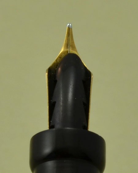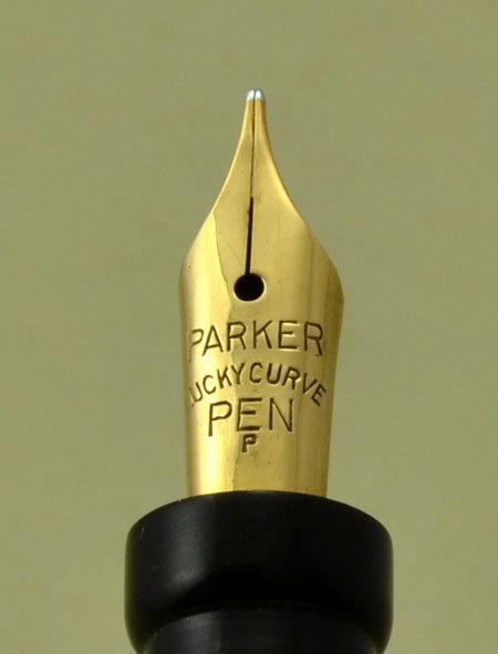 Nib 14k nib marked "Parker Lucky Curve Pen 2" -- fine with some flexibility. Excellent tipping material.