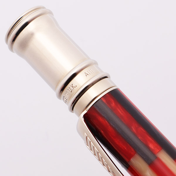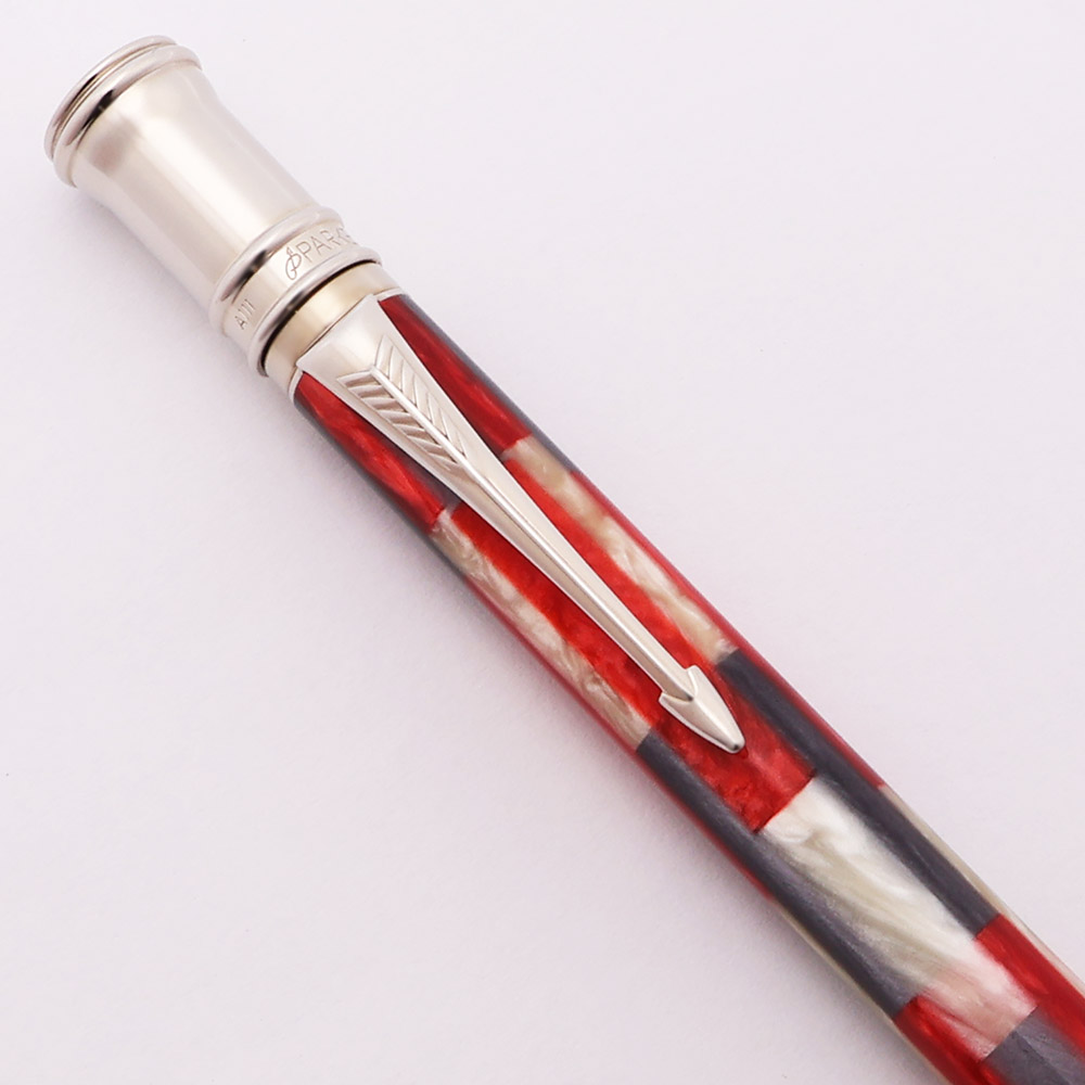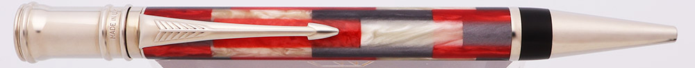 Color Red, gray, and pearl mosaic body with platinum plated trim and a black band near the cone.